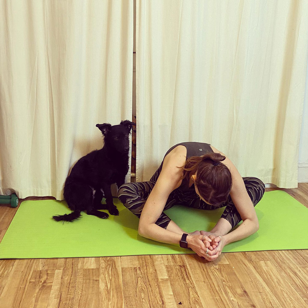 - Bring the left shin forward, making sure it is parallel with your exercise mat.
